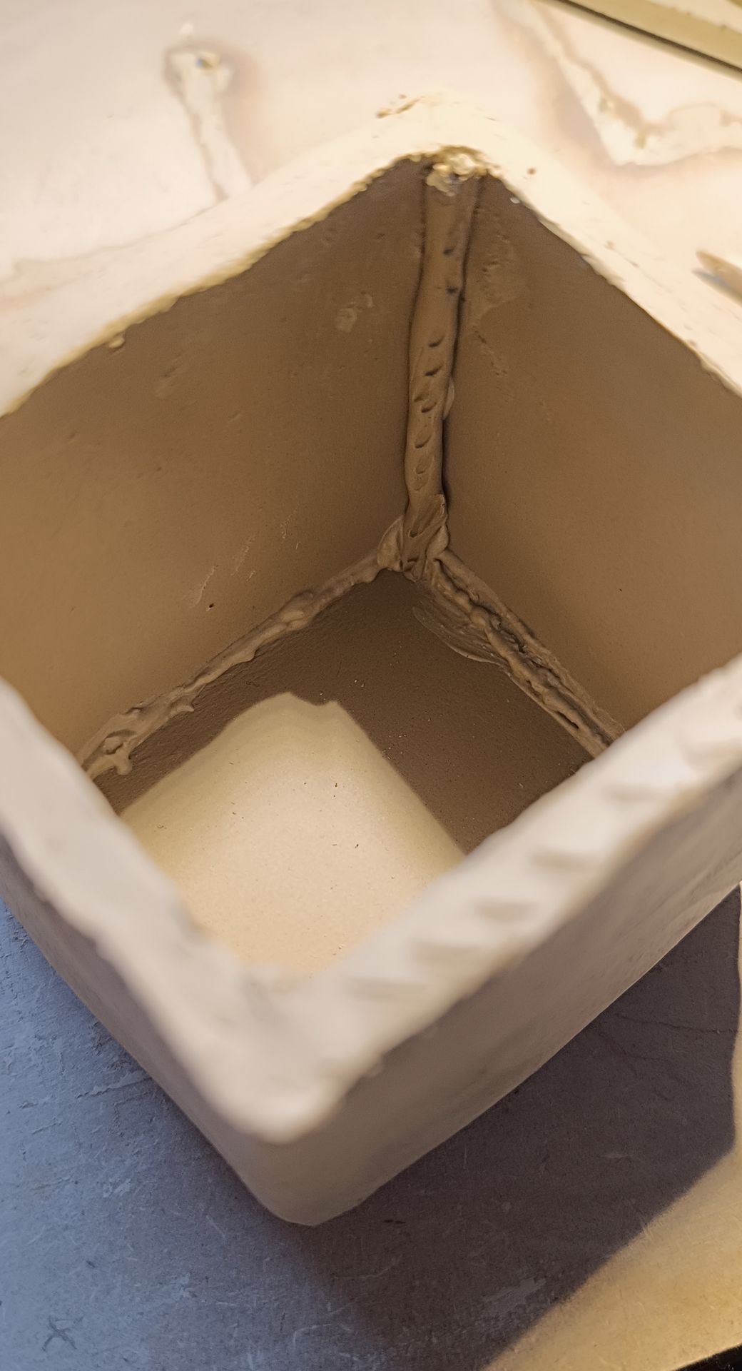 Je travaille la terre principalement par modelage, en utilisant la technique de la plaque ainsi que le pinching (ou pinch-pot = pot pincé).