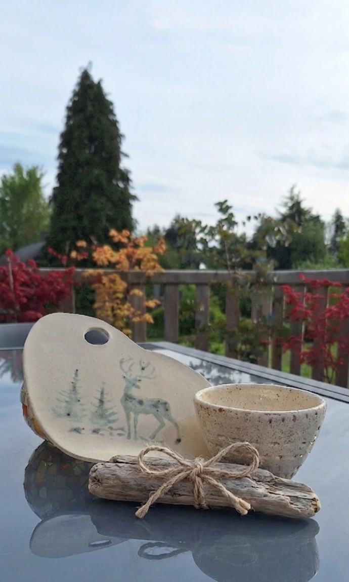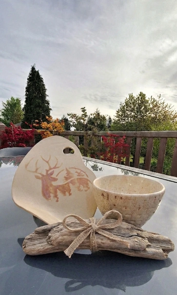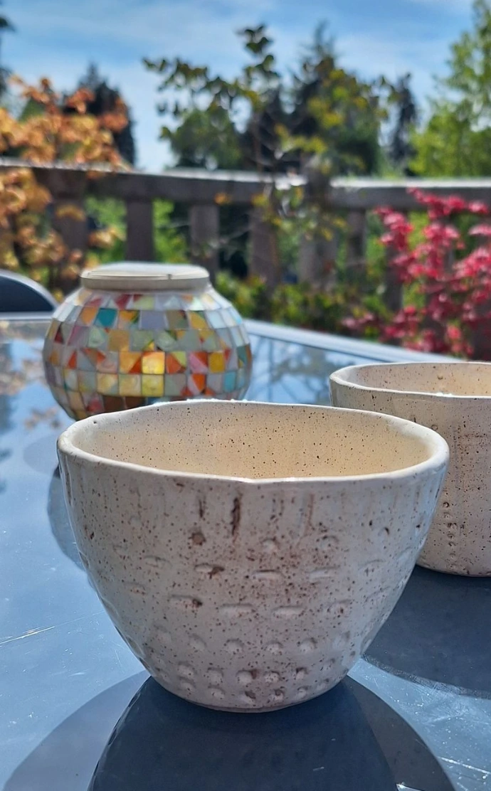 La rosée sur les feuilles, le premier rayon qui réchauffe la terre. La collection Matin doux est née de ces instants magiques. Chaque pièce en grès, unique et façonnée à la main, porte en elle la douceur d'un jardin qui s'éveille — à saisir entre vos paumes au fil des matins.